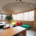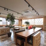 仲間とのコミュニケーションが取れるオープンな空間と、一人業務に集中できるプライベートな空間の両方を兼ね備えたデザイン。