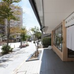 石畳や灯篭など趣のある街並みに溶け込むような外観、