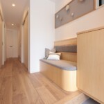 造作のベンチ付きシューズボックスがお出迎えしてくれます。