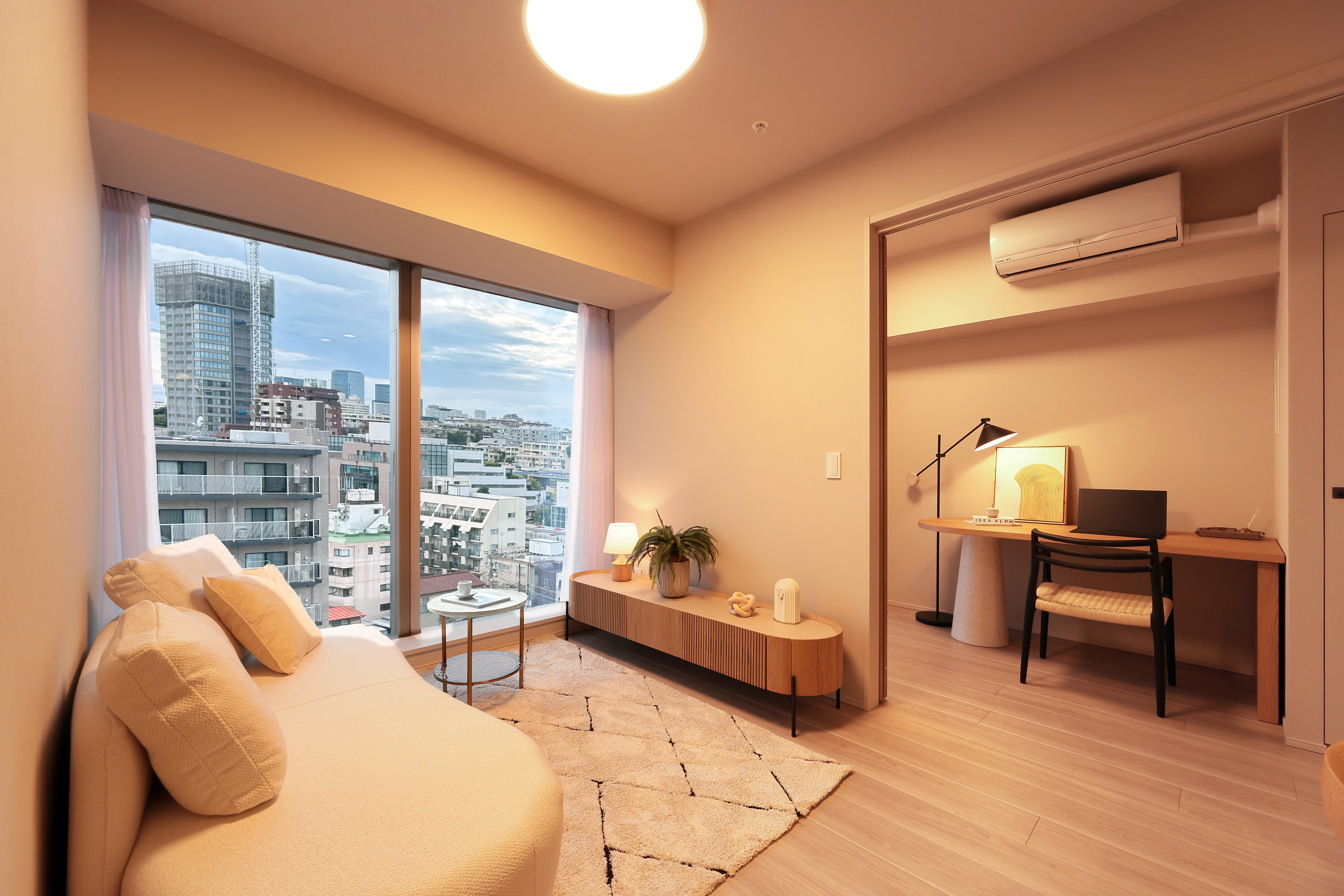 窓から除く、都心の景色とも調和して奥行の感じる空間に