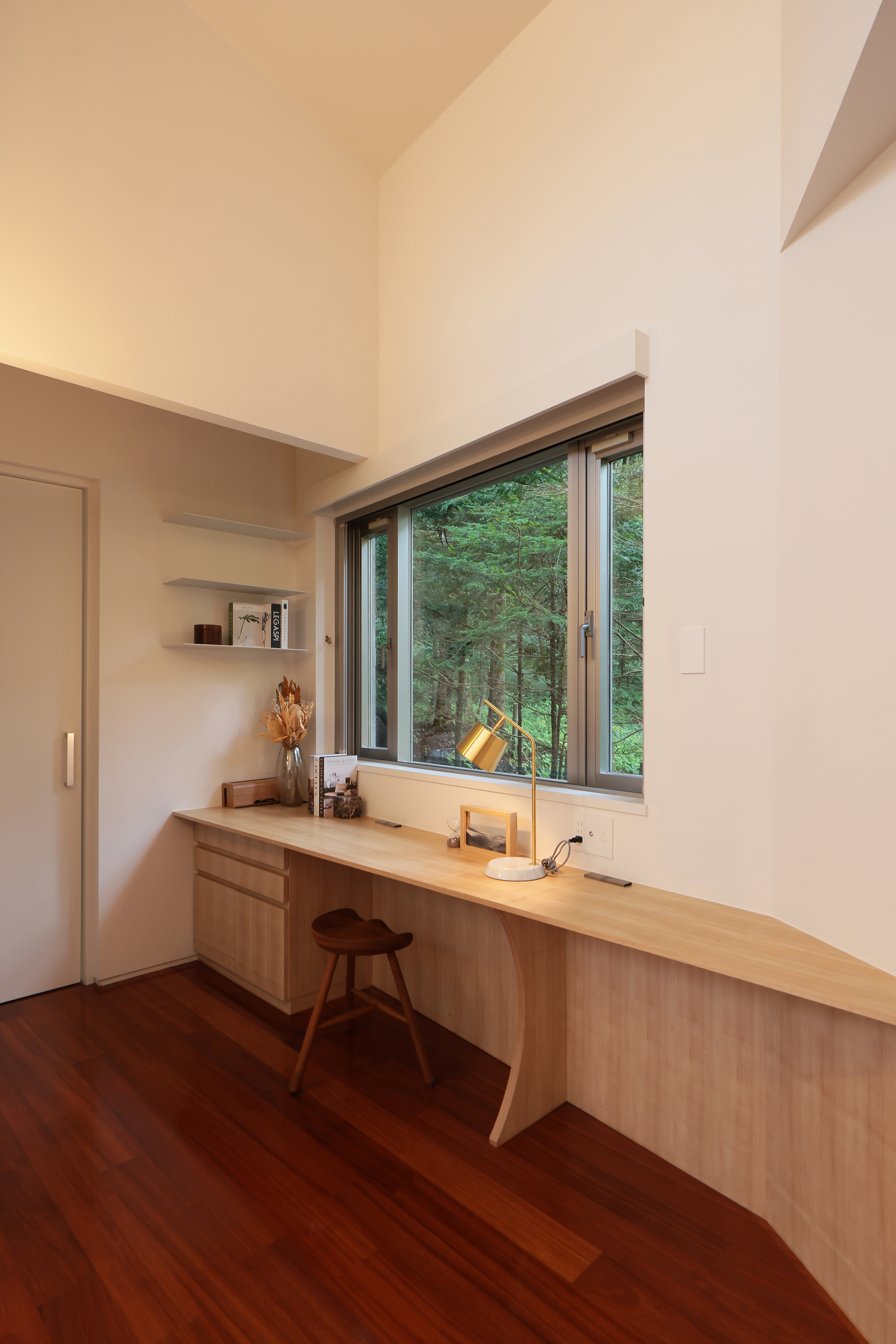正面の緑を眺めながら、仕事・勉強・趣味時間など思い思いの時間を心地よく過ごすことが出来ます。
