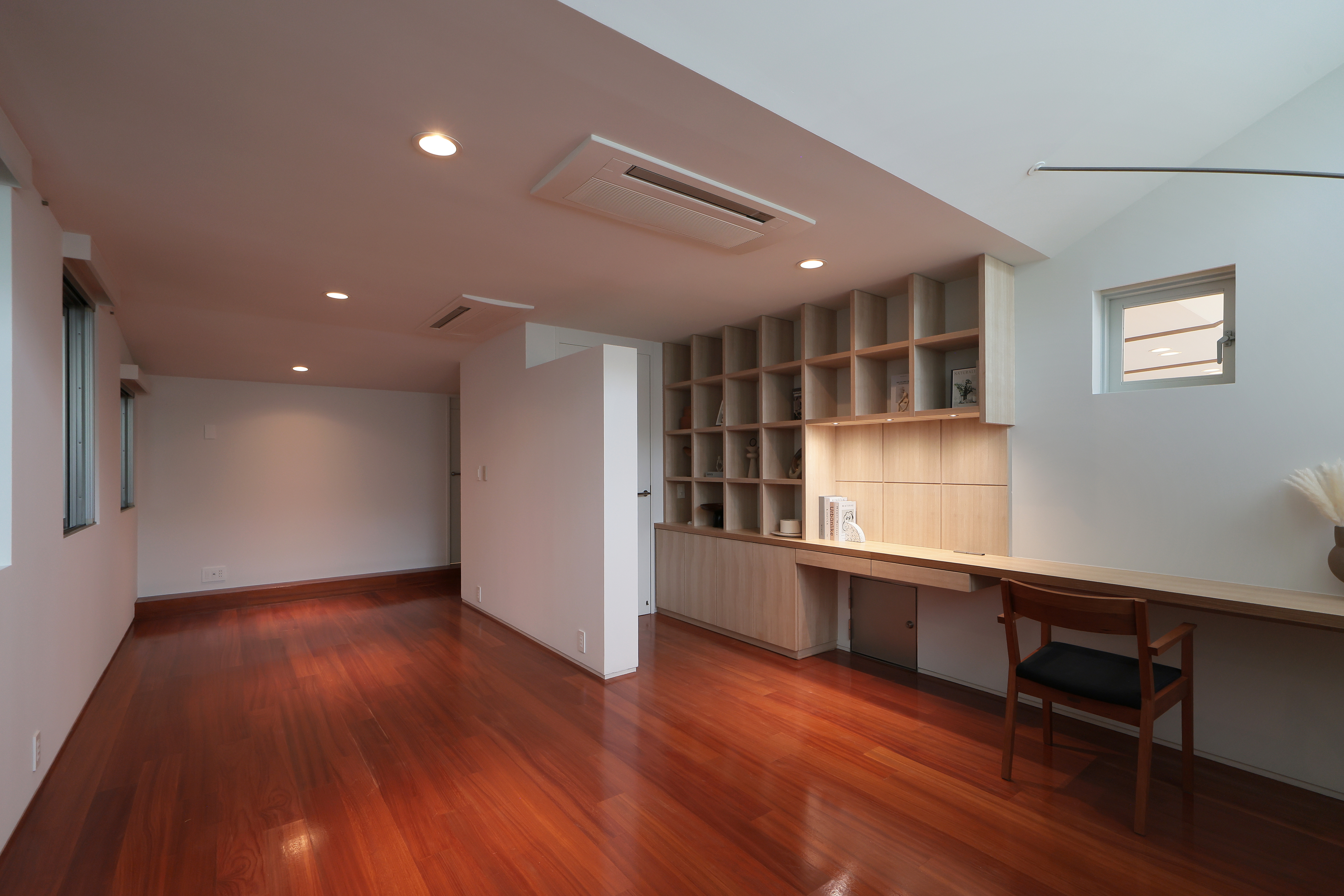 他の部屋より落ち着いた雰囲気でありながらも、温かみをプラスする為にフローリングを明るいカラーに変更し