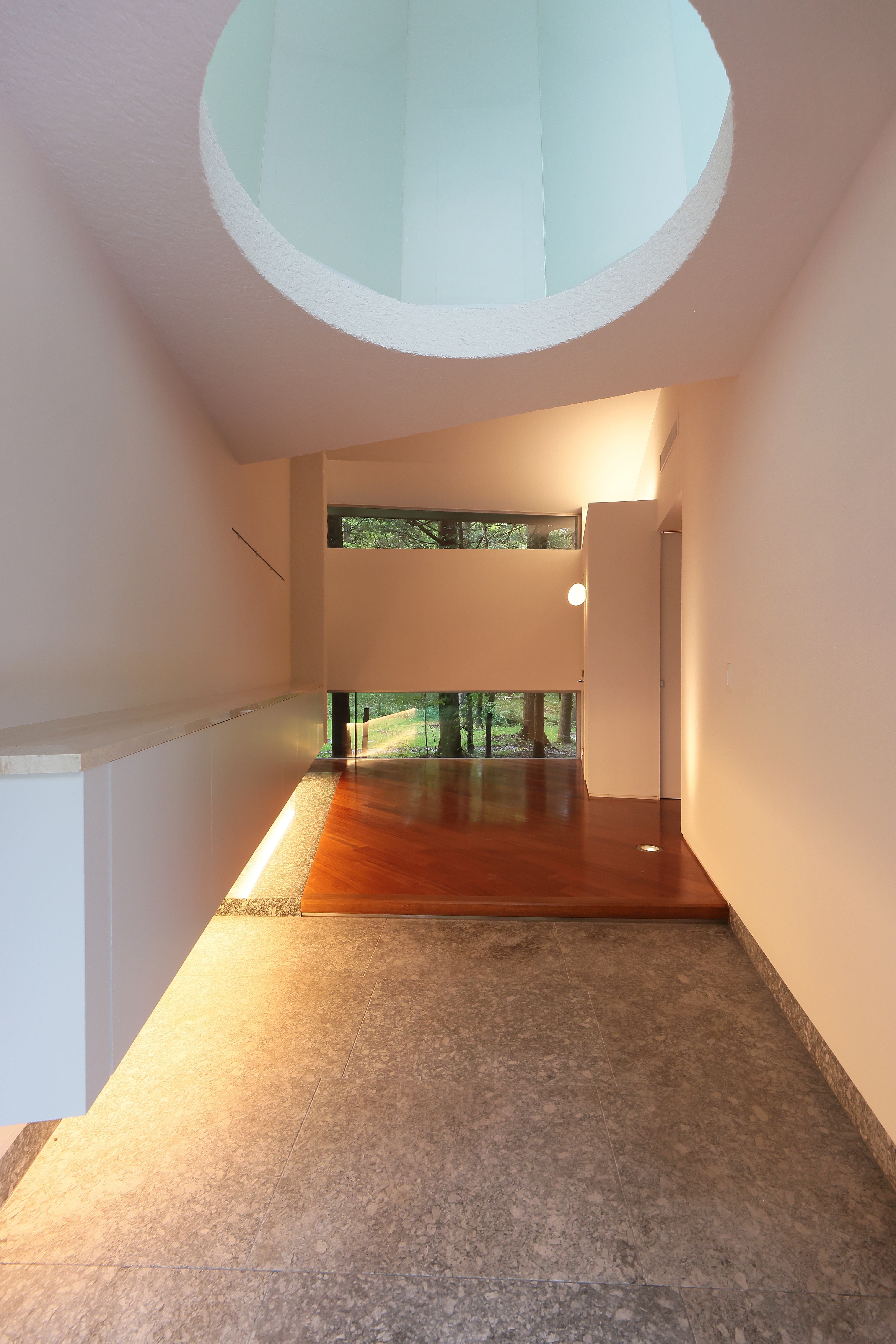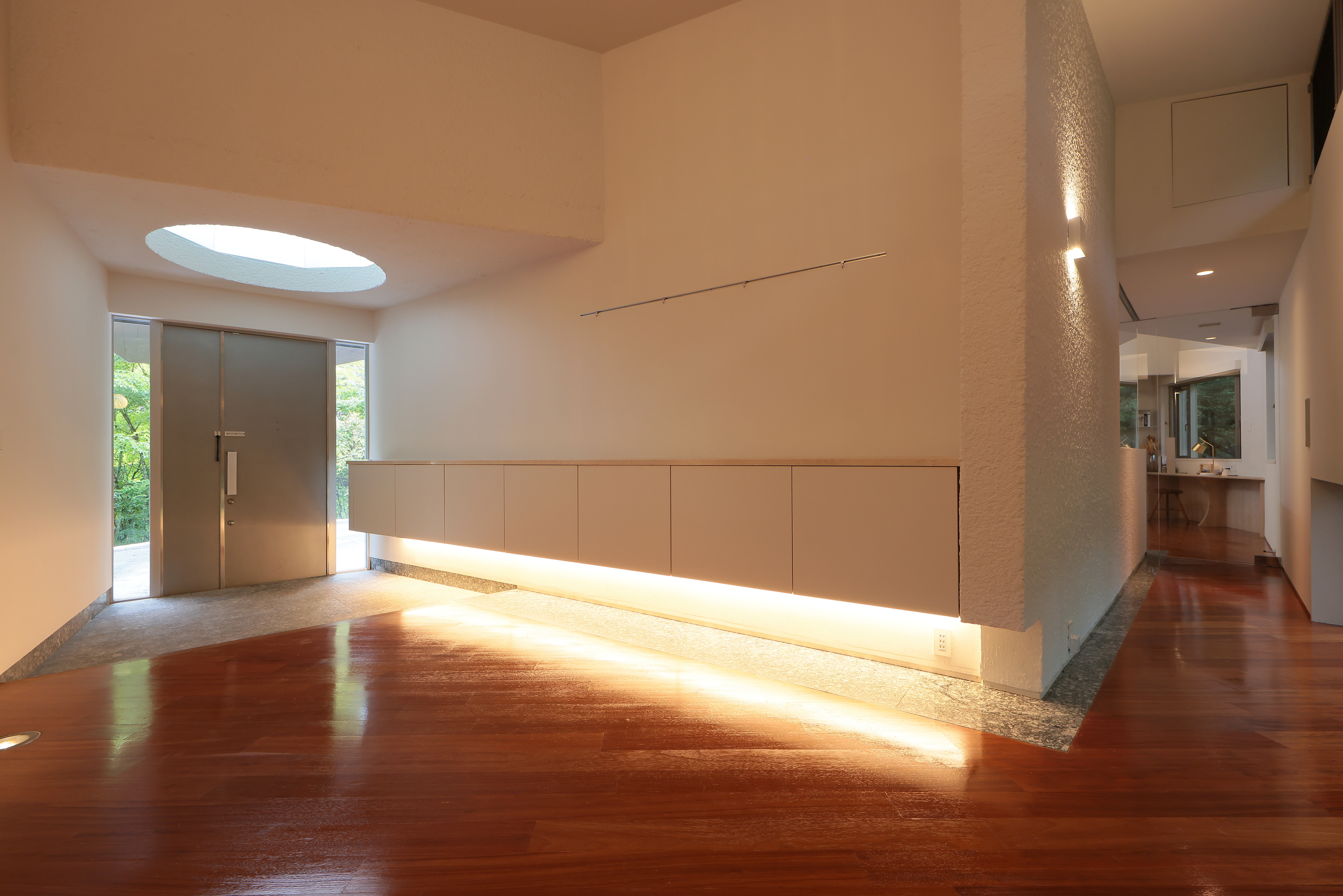 玄関を入ると、筒状の天窓から自然光が差し込み柔らかな光がお出迎えしてくれます。