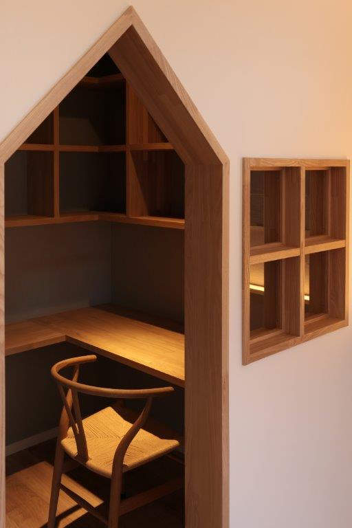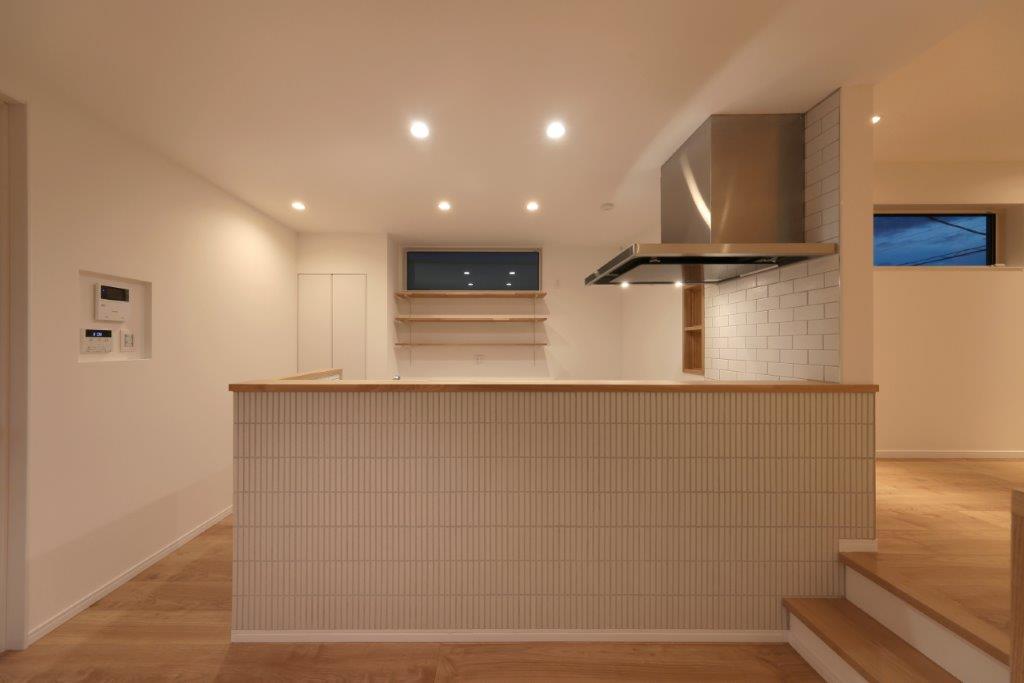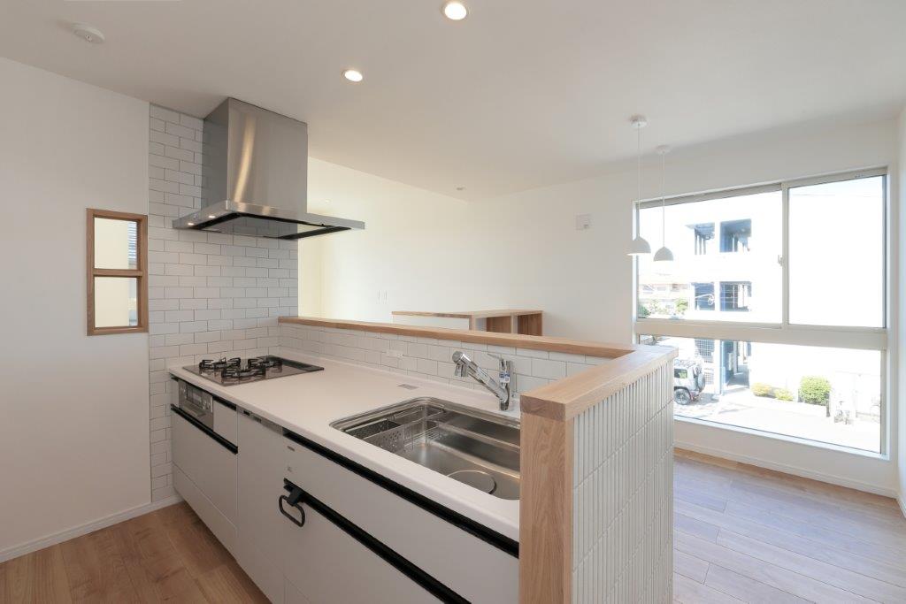 また、キッチンからリビングの様子がうかがえるように造作の内窓を設けました。