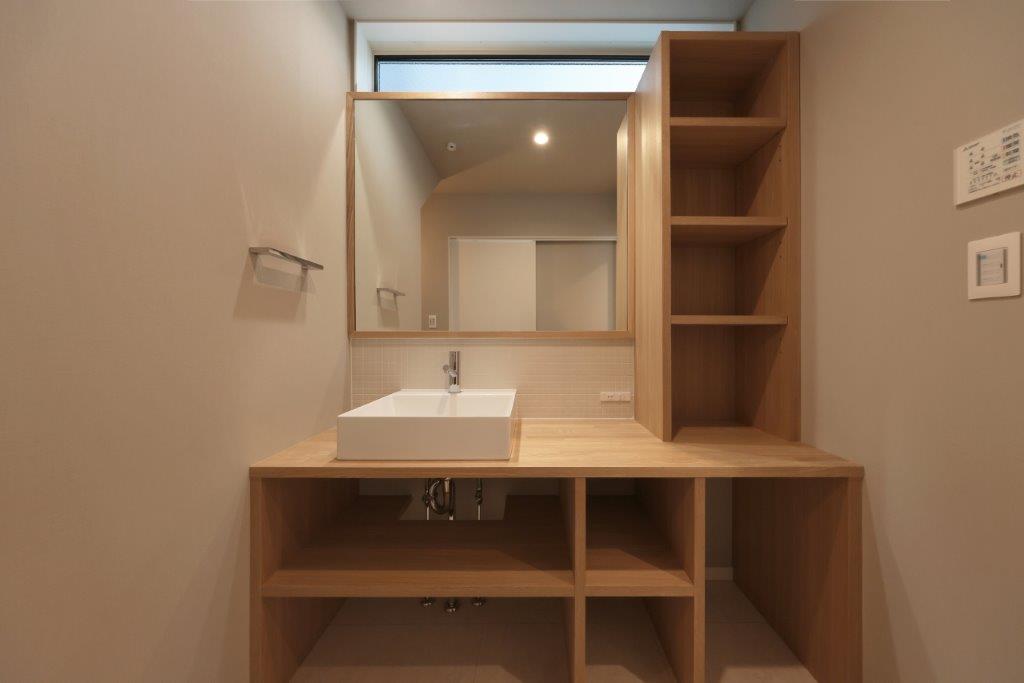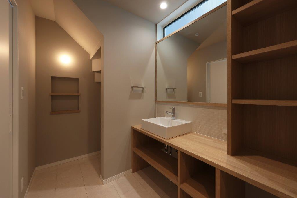 ランドリールームを兼ねた脱衣室は家事の効率がアップ。