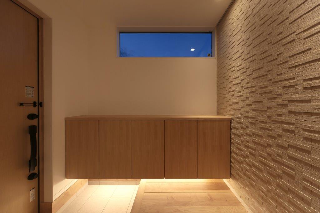 玄関ホールには調湿・脱臭効果のあるエコカラットと、