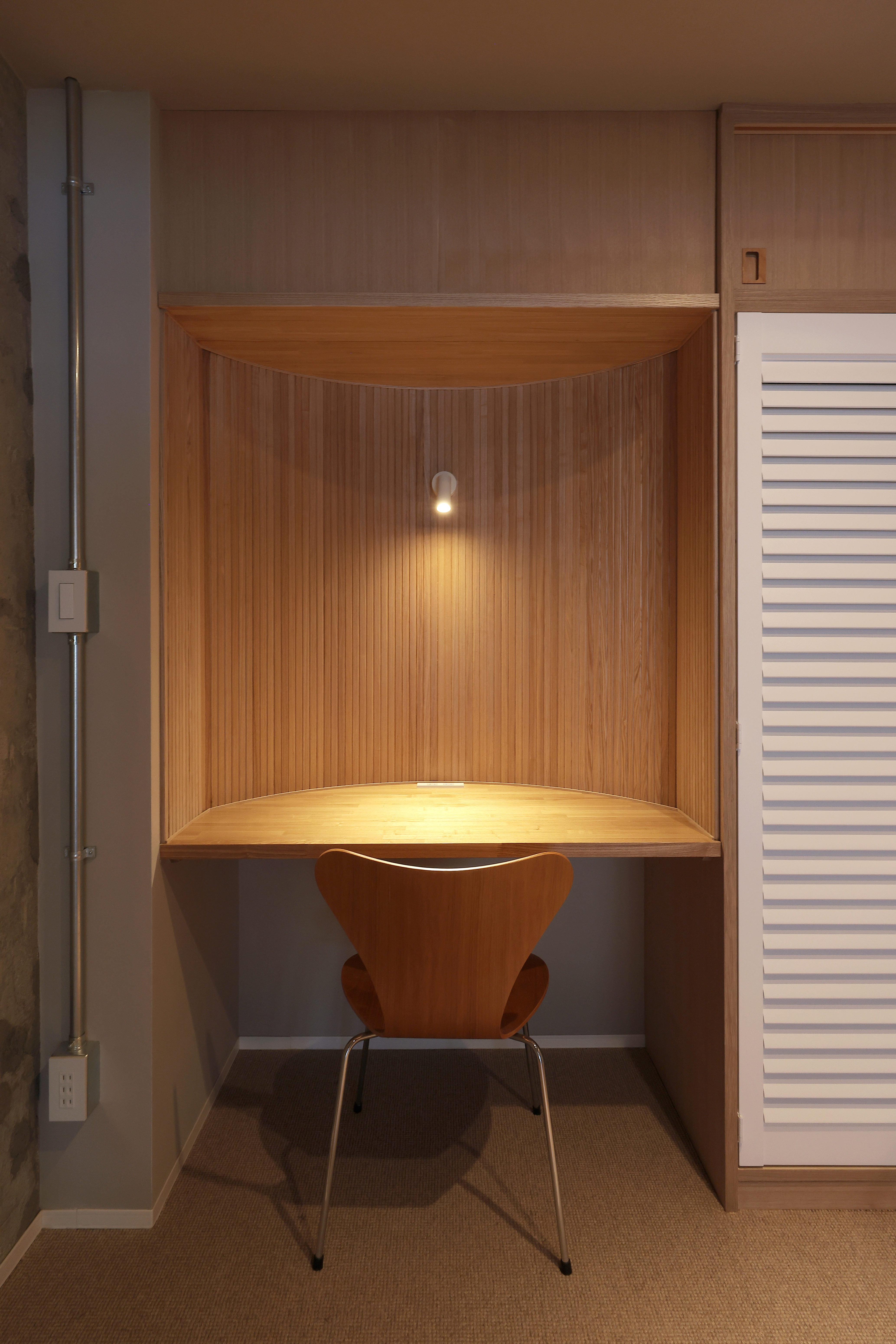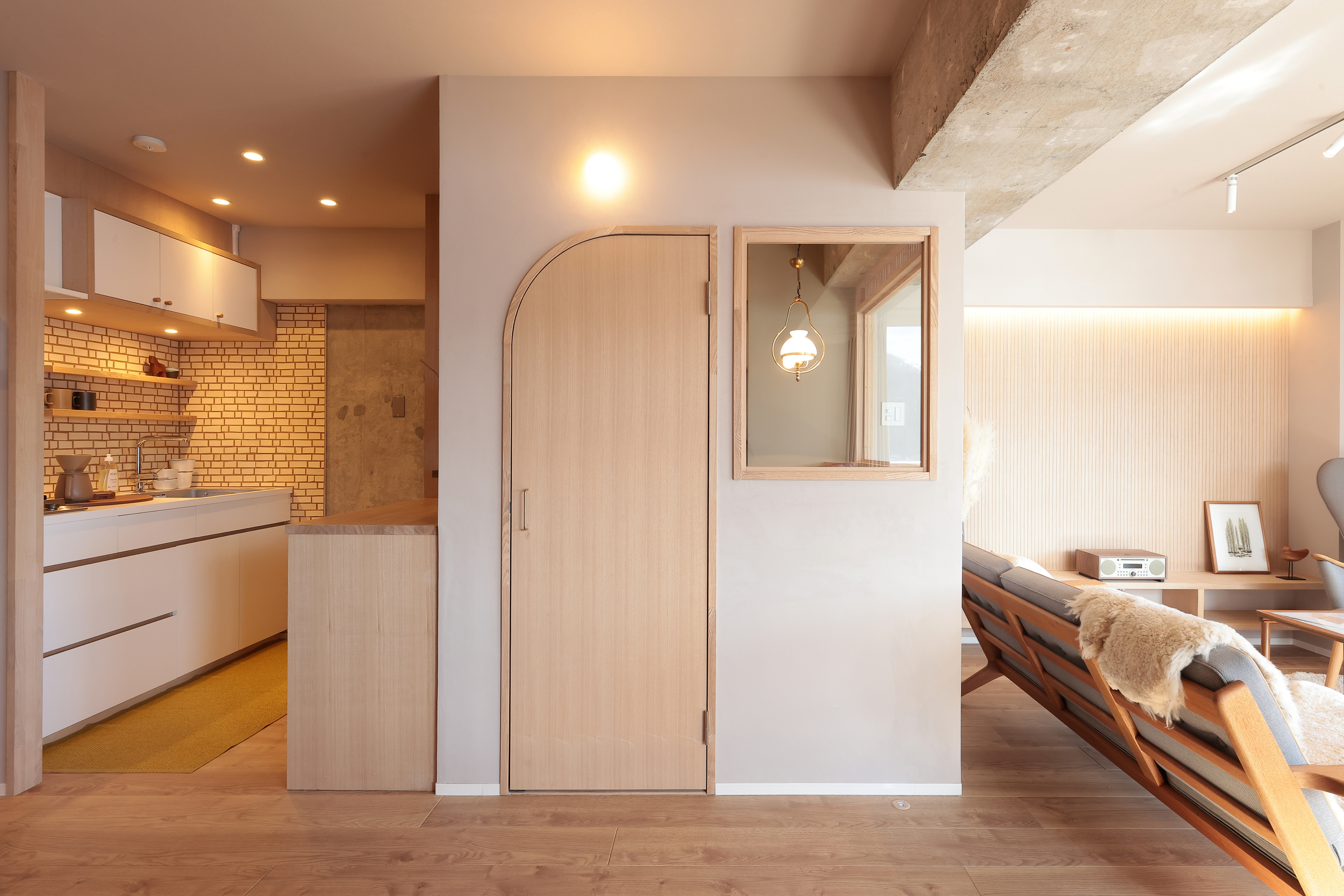 一部現わしにした躯体の雰囲気とも相性が良く、落ち着いた空間を演出してくれています。