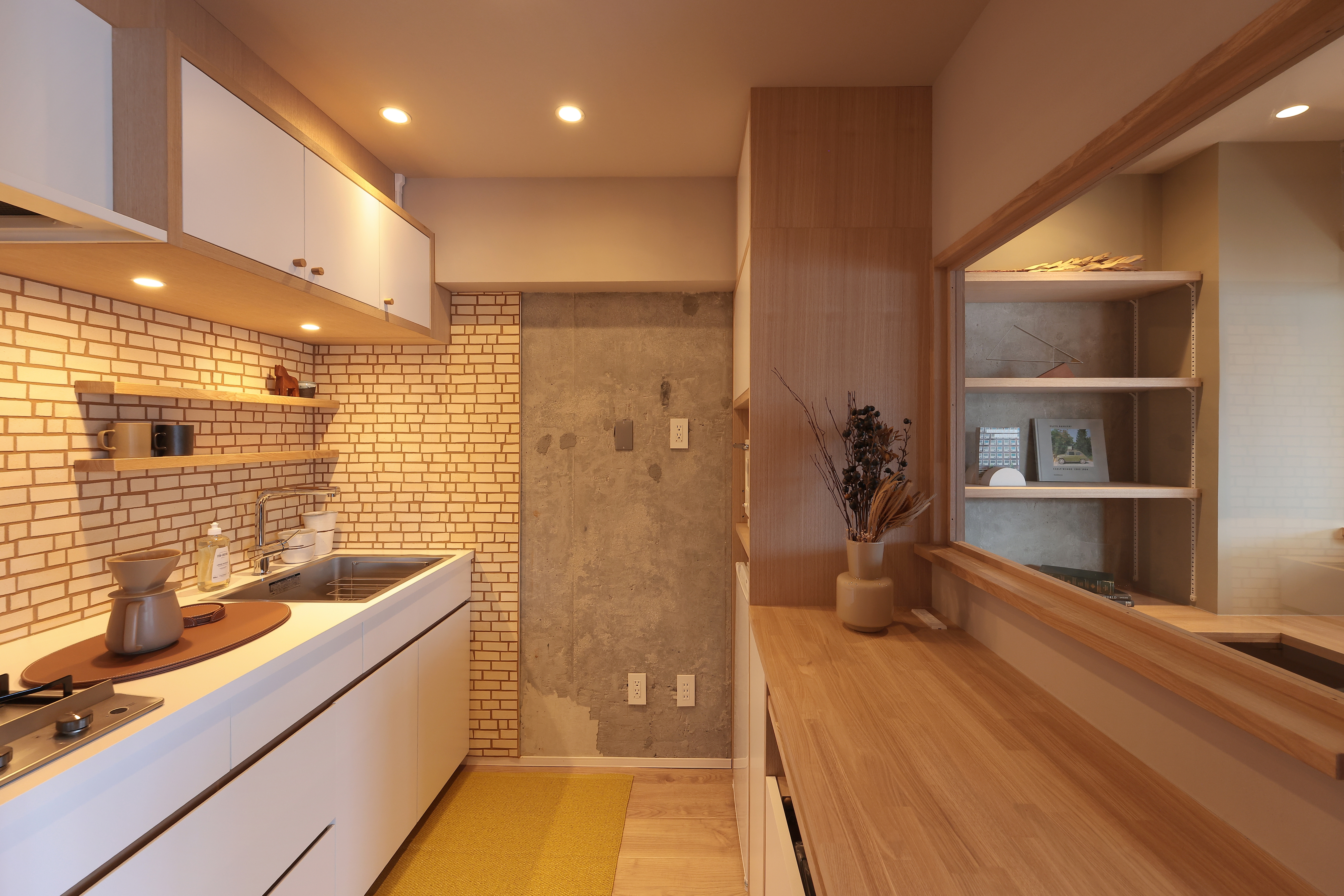 マットホワイト×木(タモ)の組合せでシンプルなデザインの中に