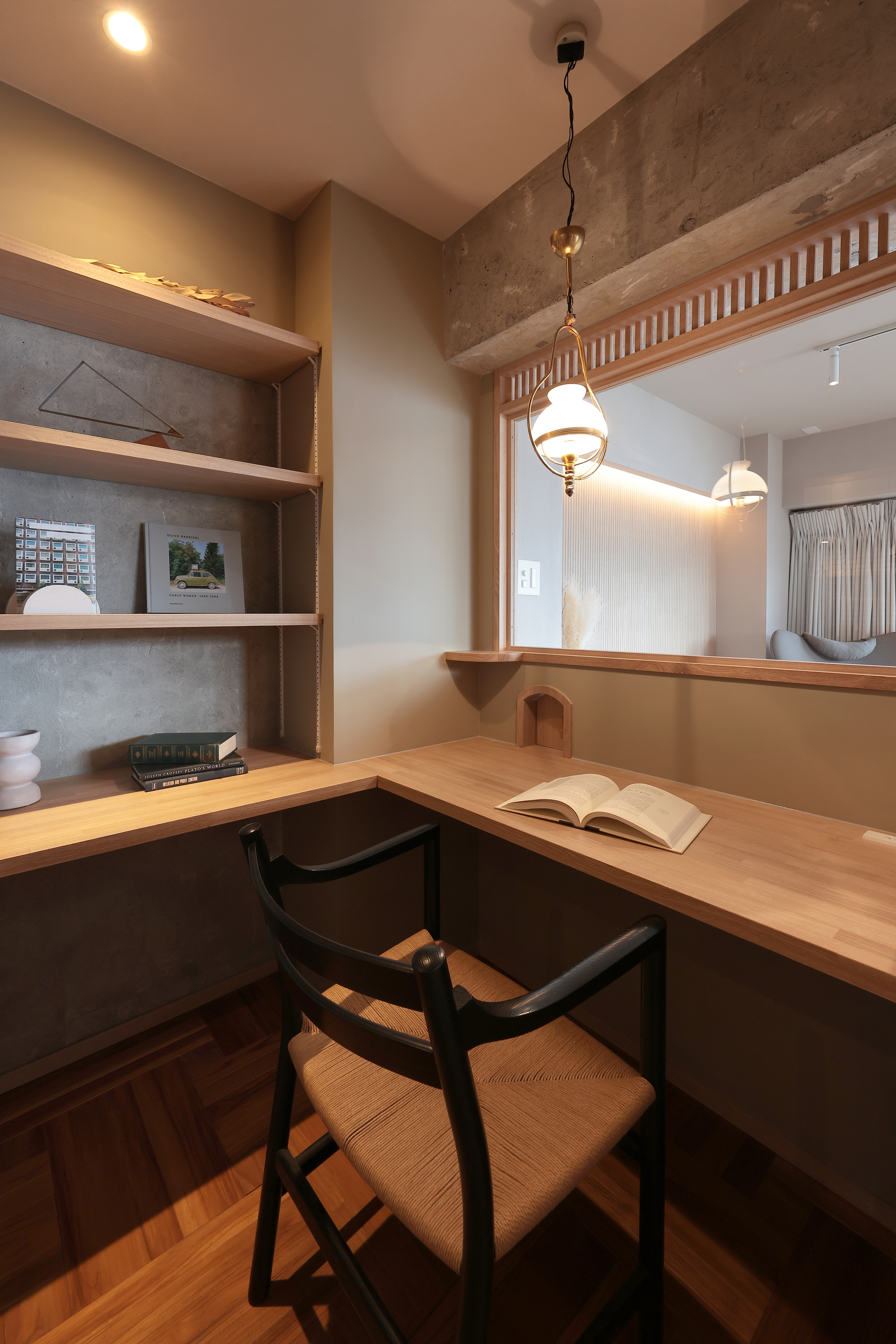 書斎は他の空間と少し印象を変え、壁は【Benjaminmoore/BerkshireBeige】