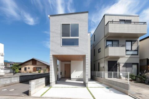 外観はグレーホワイトのラップサイディングを採用し、シンプルながらも奥行のある立体...